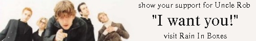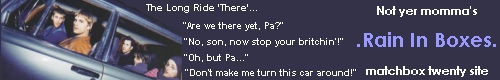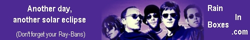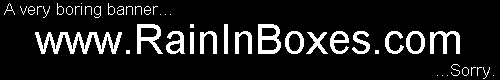 The code for this banner is <A HREF="http://www.raininboxes.com"><IMG SRC="http://www.raininboxes.com/graphics/rainbanner6b.jpg" BORDER="0" ALT="Rain In Boxes..enter if you dare..."></A>